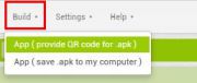 Dans le menu Build, sélectionner Build pour générer une application téléchargeable par QR code.