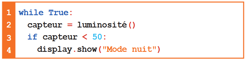 La ligne 3 teste la valeur renvoyée par le capteur de luminosité.